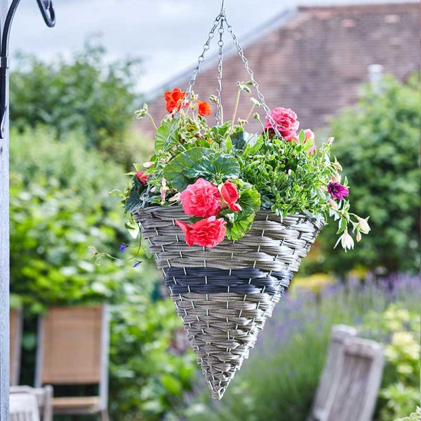 Pre-lined for easy planting. Tough and durable. Long Lasting rattan effect material. Will hold up to 7 litres of compost. 38 x 35 x 35 cm.