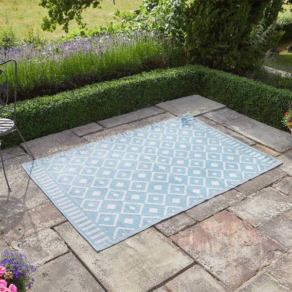 Ideal for patios, terraces, balconies, halls or kitchens. 100% Polypropylene. Rugged and water resistant- to clean, simply wipe or hose down outside. 120 x 180 cm.