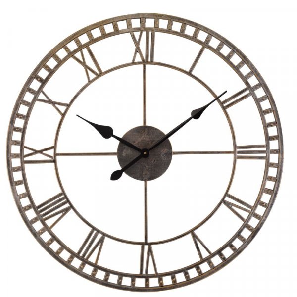 Suitable for outdoor or indoor use. Contemporary skeleton design. Metal Construction. Quartz accuracy. Weather resistant. Requires one AA battery. 2 YEAR GUARANTEE. 80 cm.
