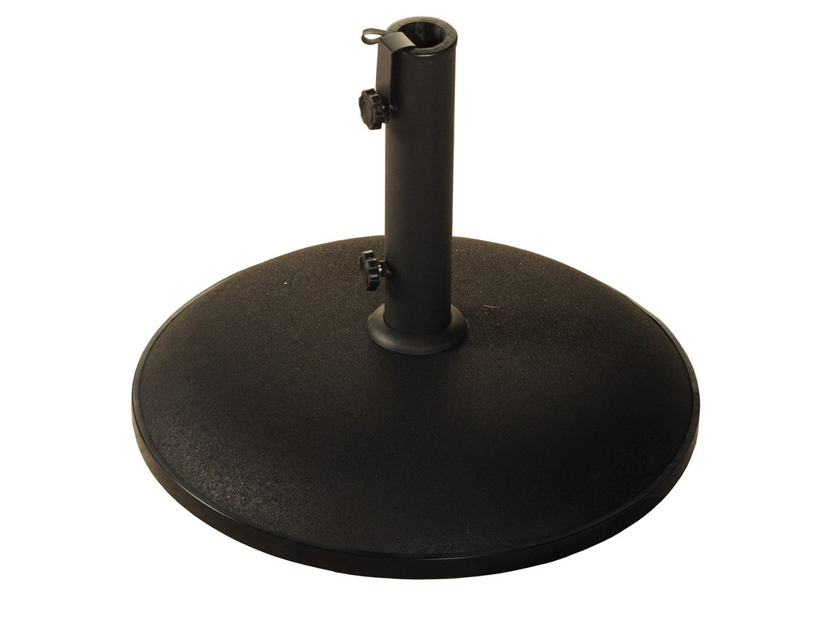 This black concrete 15kg parasol base has a 48mm thick steel tube, with two screw inserts to secure parasol.