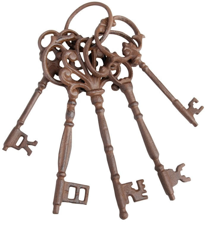 This decorative keyring with five old fashioned cast iron keys has been hand cast according to centuries old tradition and craftsmanship. Dimensions 6.5 x 8.2 x 24.5 cm