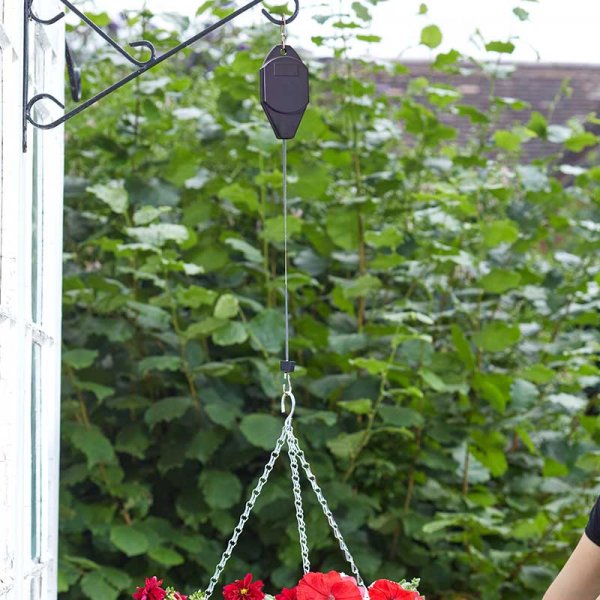 Basket lowering and raising device. Ideal for hanging baskets and bird feeders. Length: 1.05m.