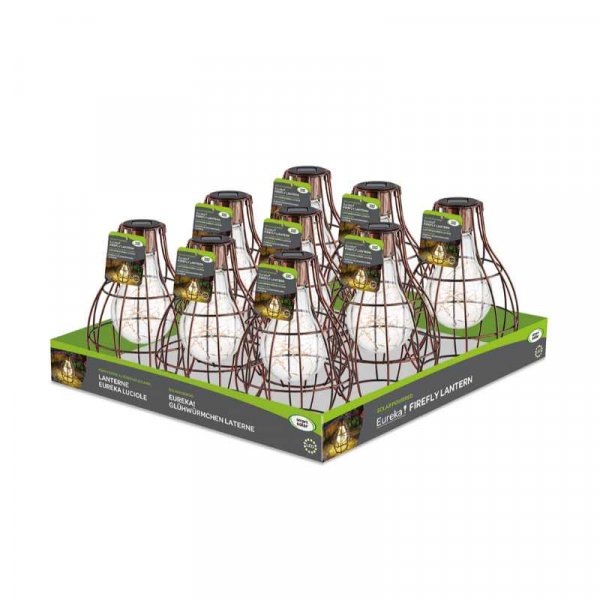 Tiny light up fireflies give this lantern a magical feel. Charges in direct sunlight. Automatically illuminates at night. 16.5 x 13 cm.