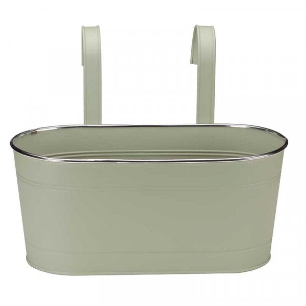 Hanging metal planter. Ideal for fences, balconies, walls and railings. Powder coated steel for long life. Will hold up to 7 litres of compost. Two hooks for added stability. 26 x 23 x 23 cm.