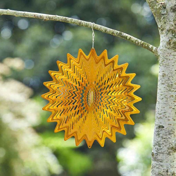The eye-catching designs create a mesmerising holographic-like effect when spinning. Weather resistant stainless steel construction. Powder-coated finish for protection against rust. For both indoor and outdoor use.