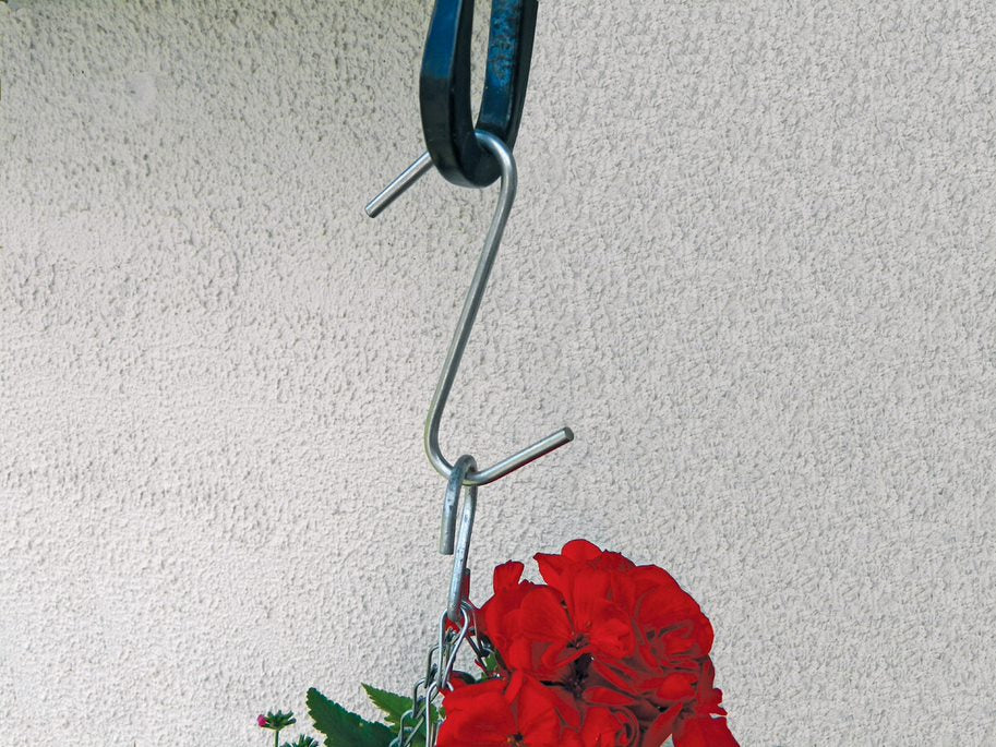 The ideal size S hook for hanging up your newly planted hanging baskets in the greenhouse before transferring them outside for the summer.