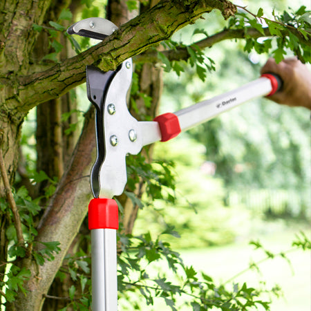 Heavy duty anvil action loppers. Ideal for pruning hard or dead wood. Lightweight aluminium handles with oval ribbed grips. Rack and pinion gearing system.