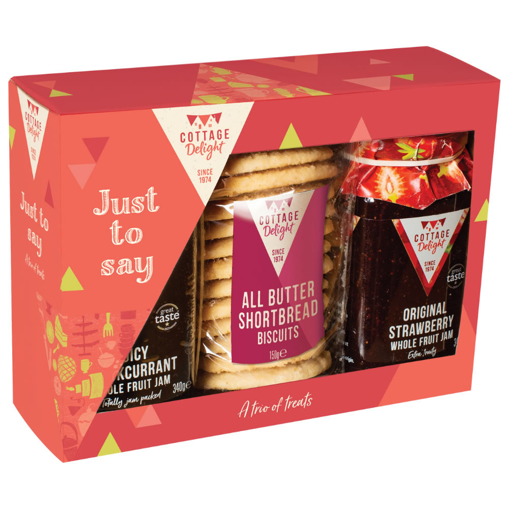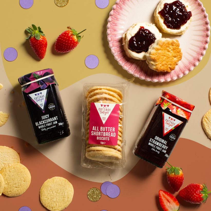 A tantalising trio of sweet favourites including fruity jams and beautiful buttery shortbread. Vegetarian.