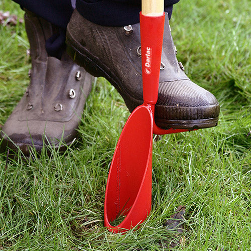 Long handled bulb planter. Ideal for planting bulbs, bedding plants and potato tubers. Back friendly bulb planting. Wooden handle. Cutting head can be sharpened if necessary. For use in cultivated and soft soil.