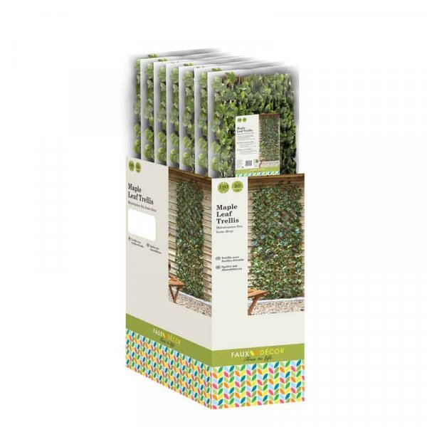 Realistic UV protected maple leaf style, attached to an expandable willow trellis. Use vertically or horizontally. A stylish alternative to traditional fencing.