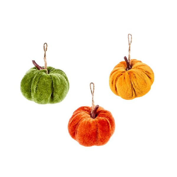 These charming plush pendants are perfect for bringing some Autumnal warmth into your home. Mixed case of 3 different colours. Comes in orange, burnt yellow or leaf green. Soft material and hand crafted detailing. 6x7.5cm