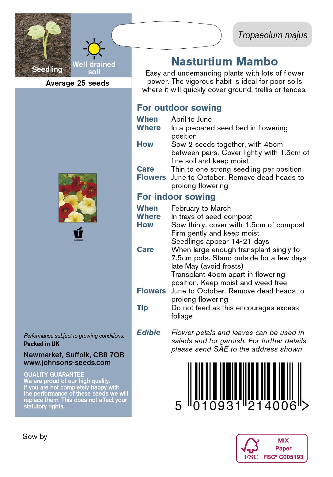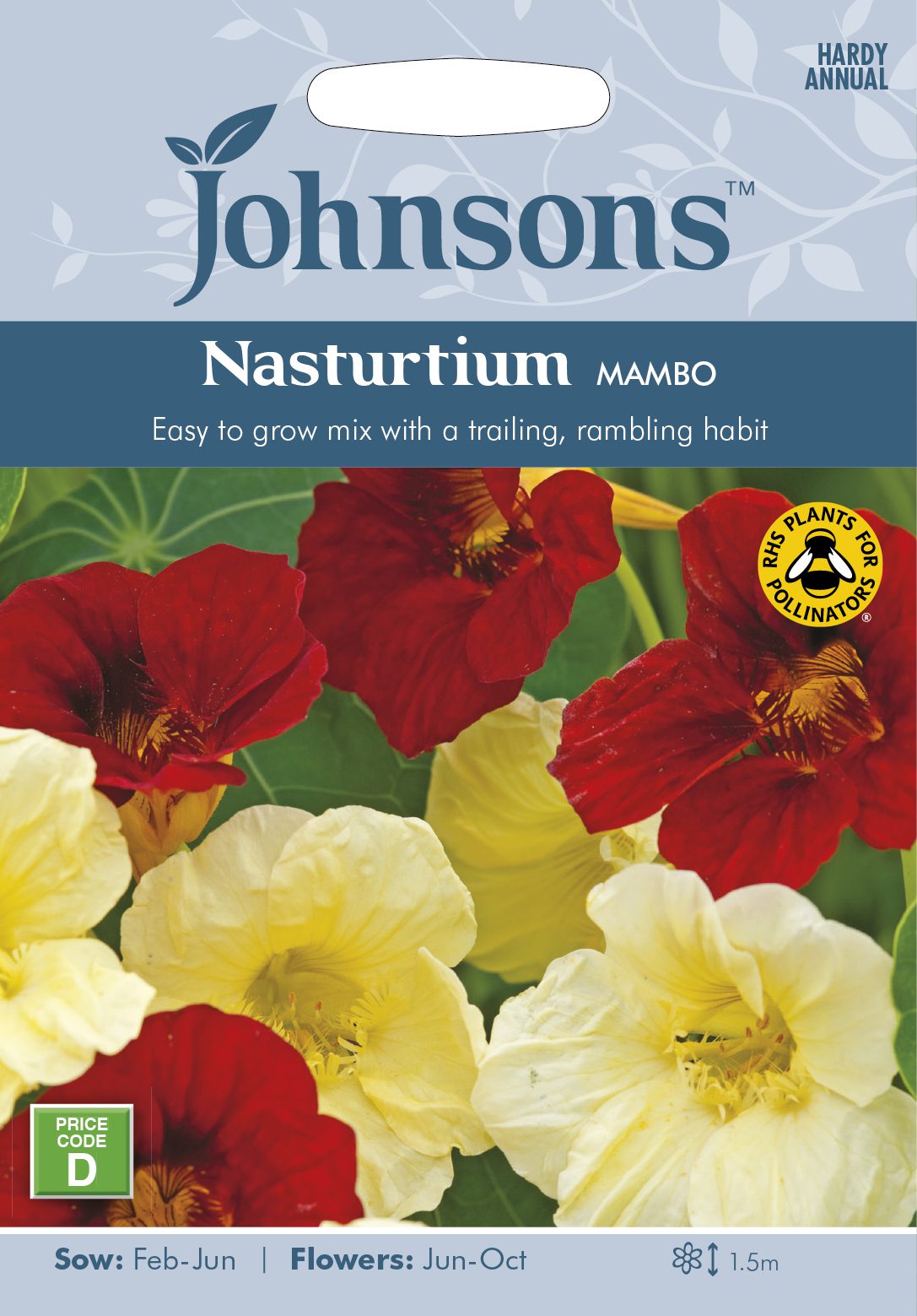 Easy and undemanding plants with lots of flower power. The vigorous habit is ideal for containers and poor soils where it will quickly cover ground, trellis or fences. Hardy Annual. Indian Cress. Tropaeolum majus.