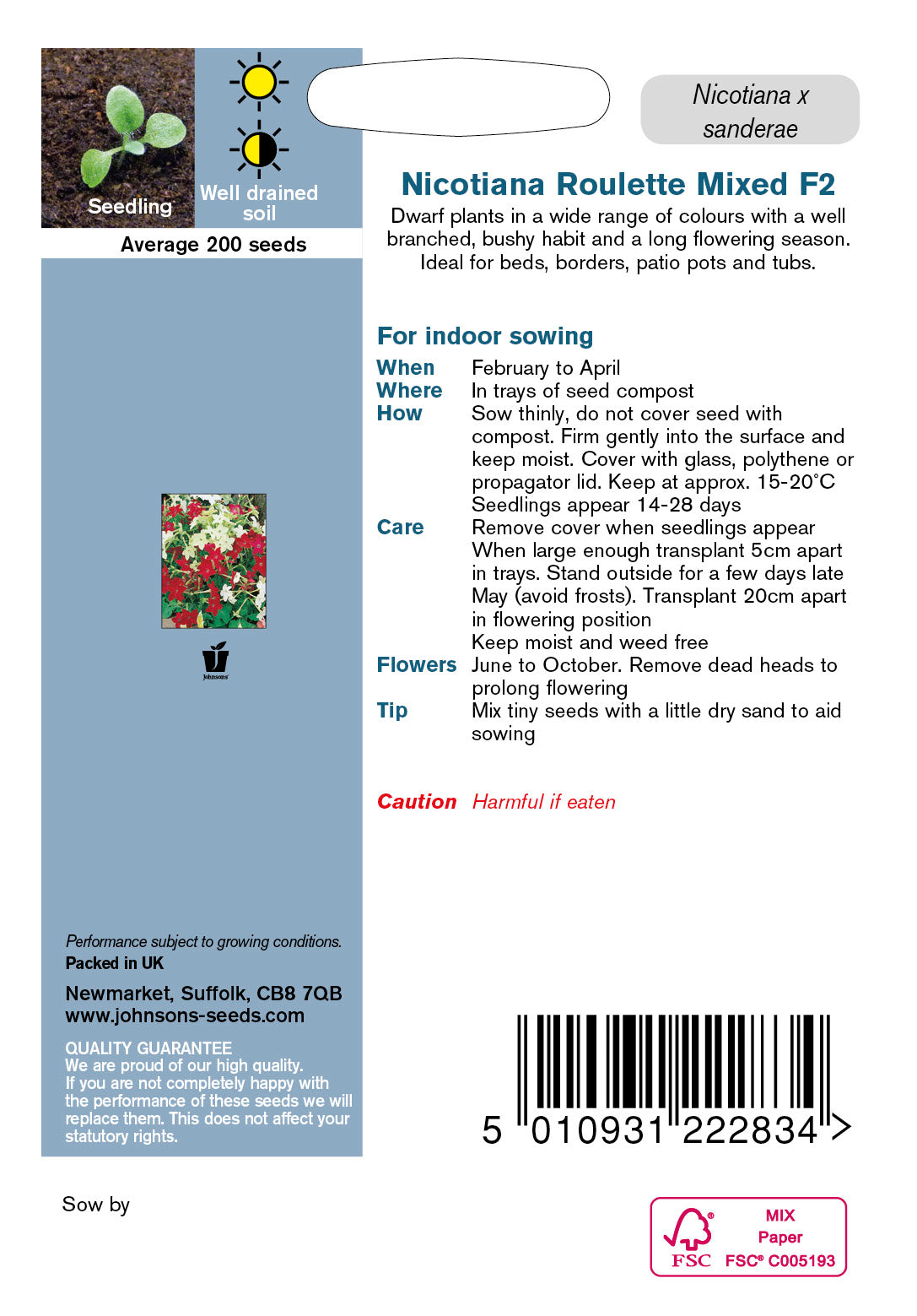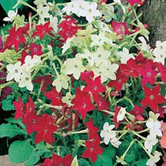 Dwarf plants in a wide range of colours with a well branched, bushy habit and a long flowering season. Ideal for beds, borders, patio pots and tubs. Half Hardy Annual. Nicotiana x sanderae.