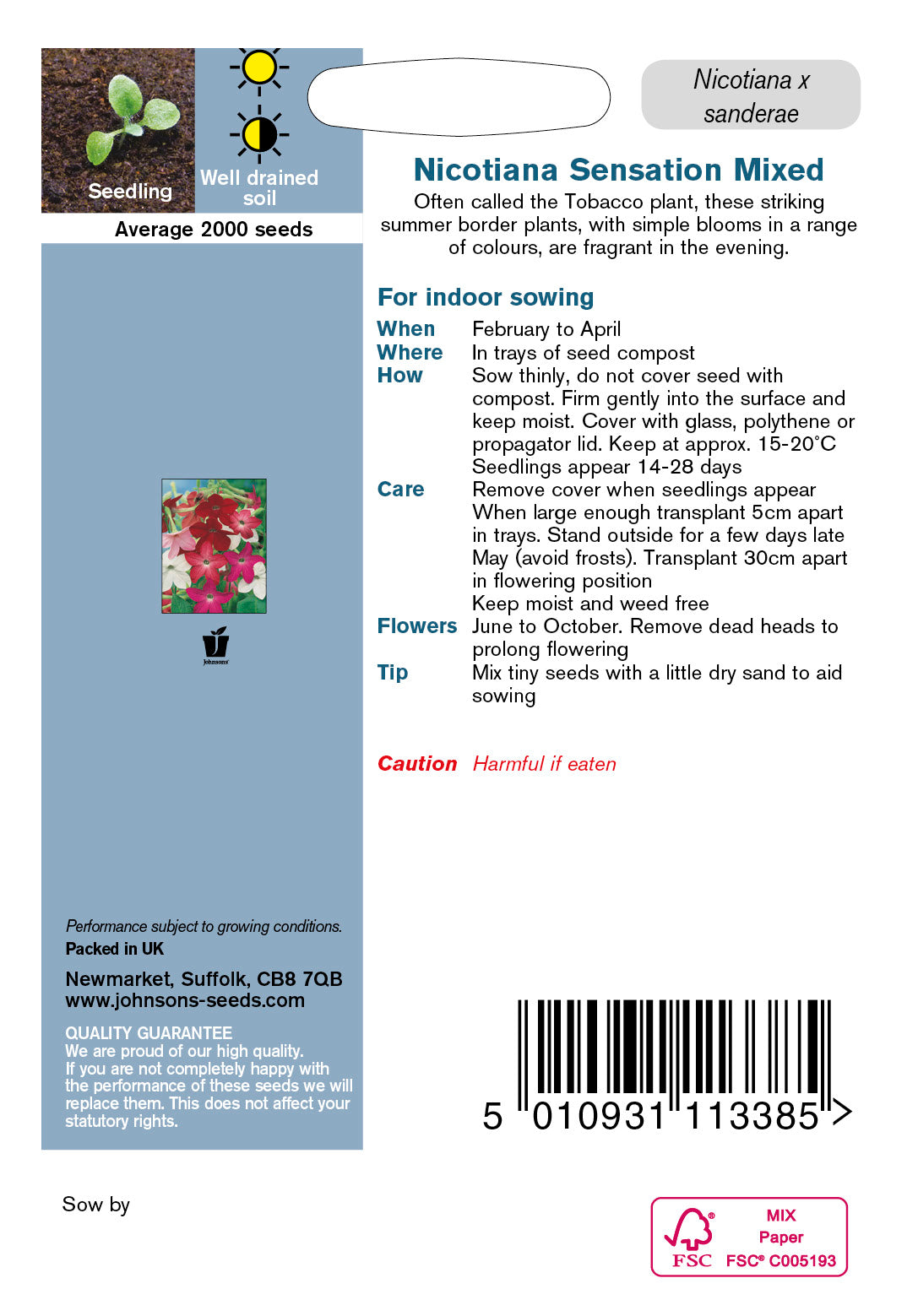 Often called the Tobacco plant, these striking summer border plants with simple blooms in a range of colours are fragrant in the evening. Half Hardy Annual. Nicotiana x sanderae.