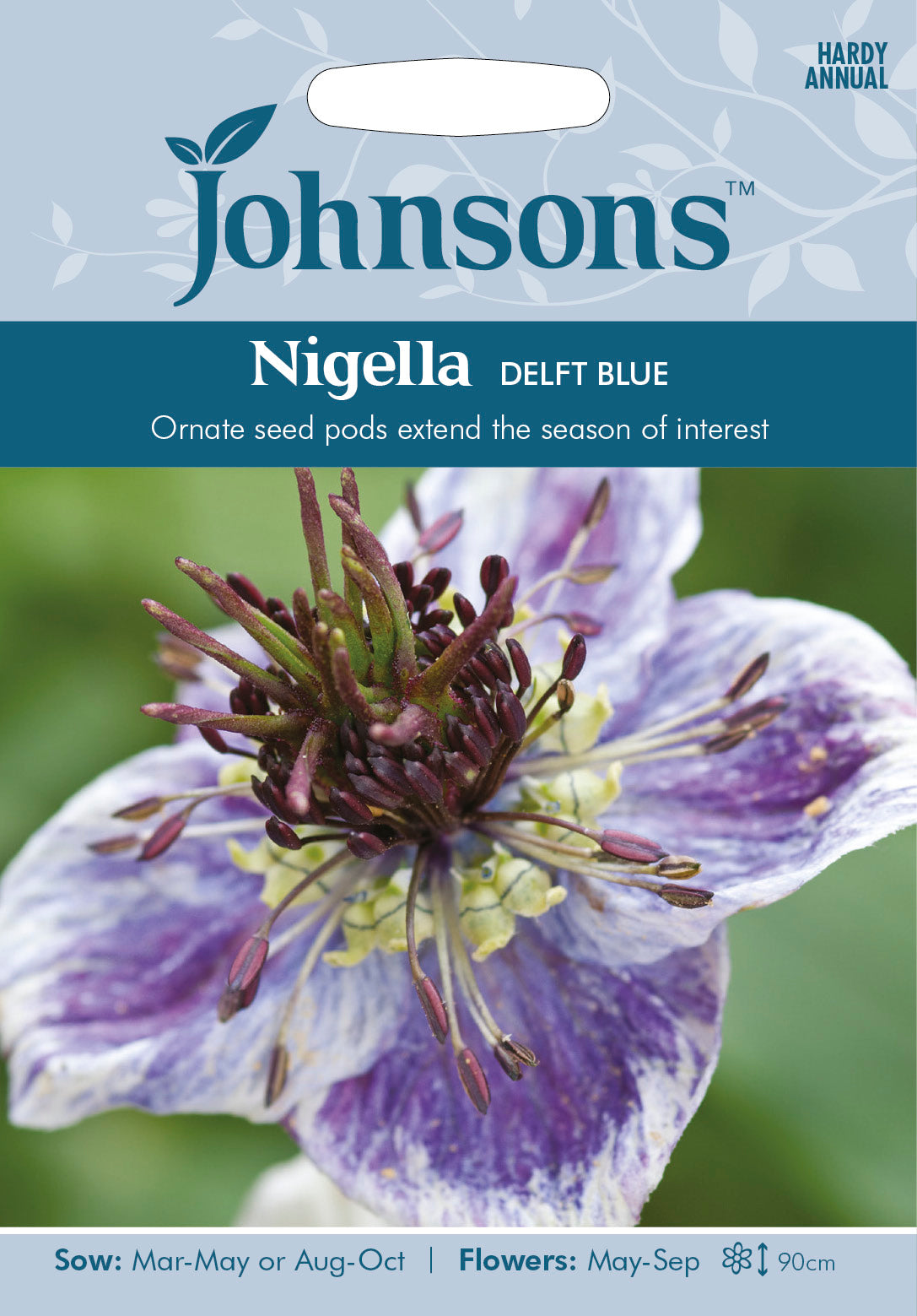 An easy annual in colours reminiscent of the famous Dutch ‘Delft Blue’ pottery, the flowers are followed by fascinating seed pods that are prized for cutting, fresh or dried. Hardy Annual. Nigella papillosa.