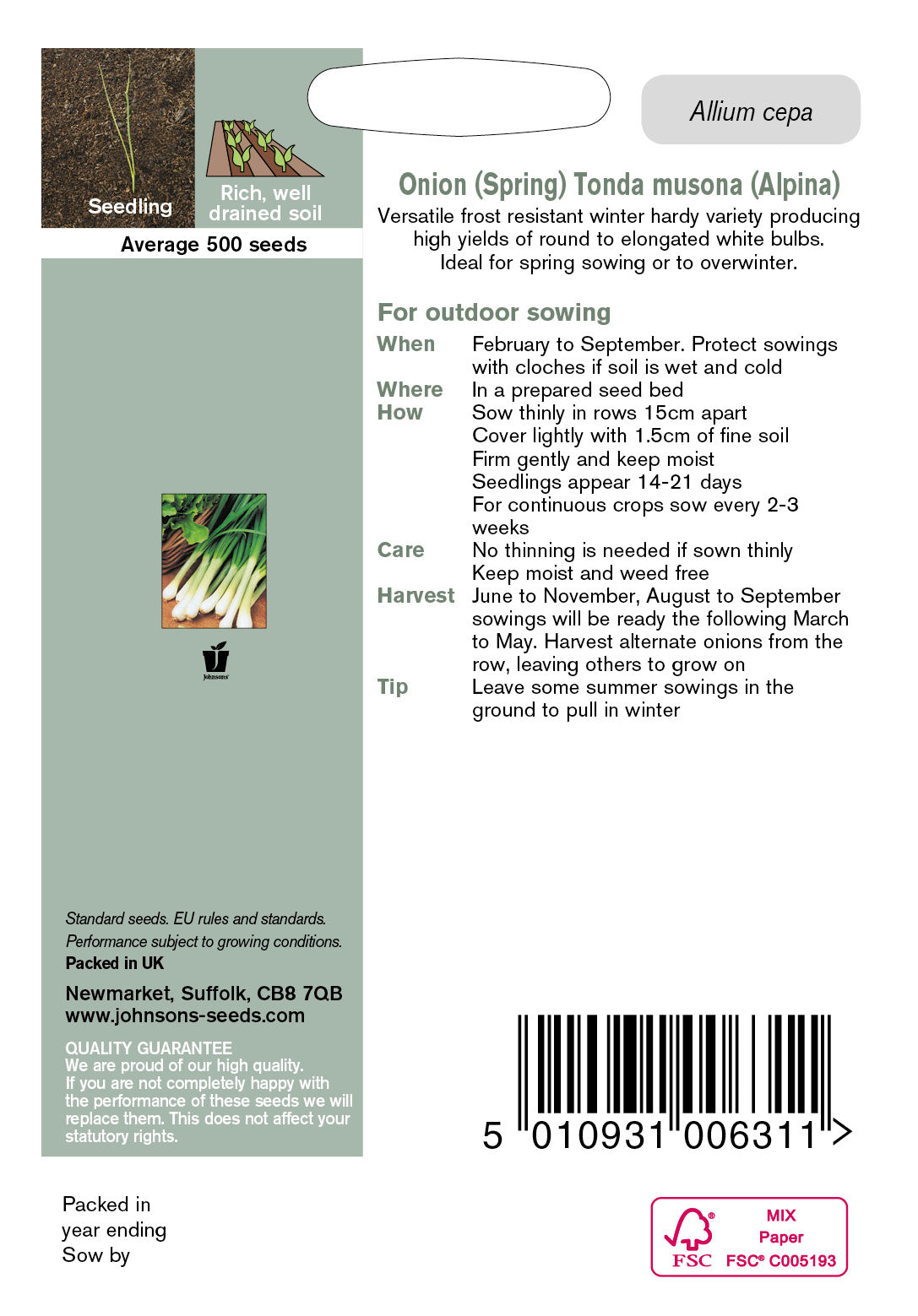 Versatile, frost resistant winter hardy variety producing high yields of round to elongated white bulbs. Ideal for spring sowing or to overwinter. Allium cepa.