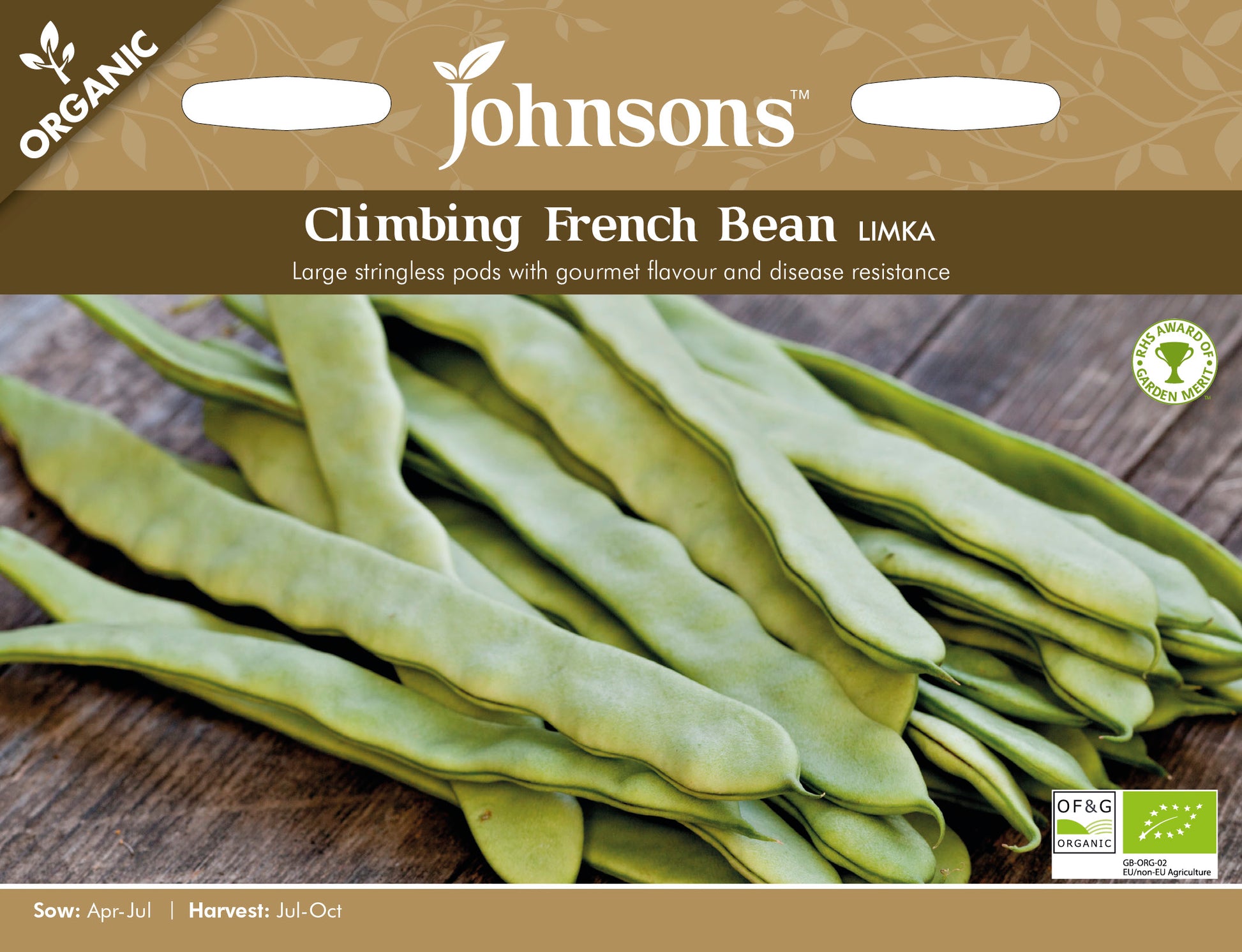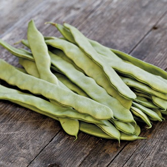 Vigorous white flowered climbing bean producing plentiful crops of large flat, stringless pods with a superior flavour and texture. Plants are quick to mature, giving early crops which also show good disease resistance. Phaseolus vulgaris.
