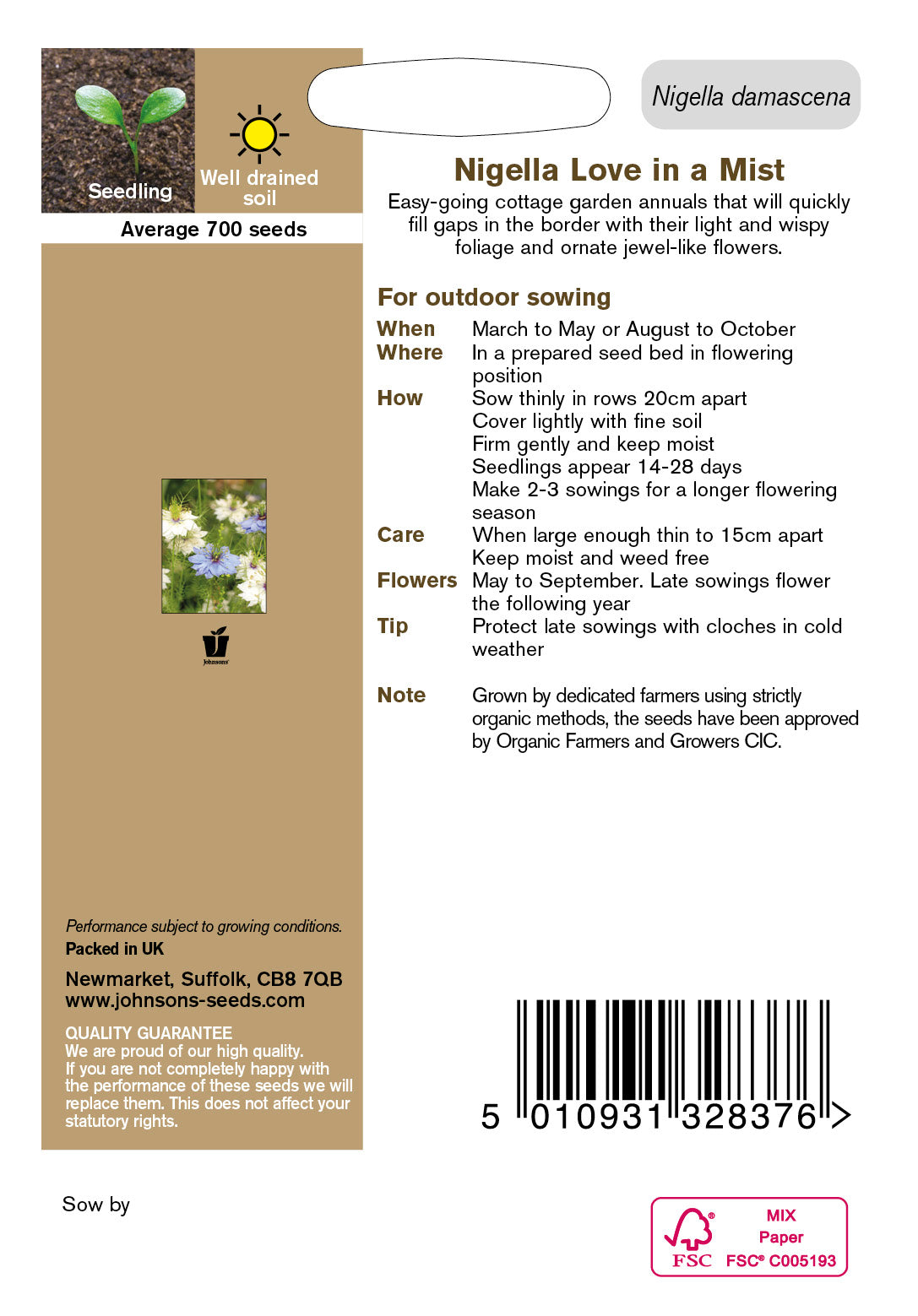 Organic NIGELLA Love in a Mist