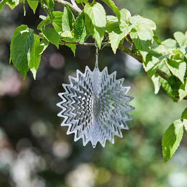 The eye-catching designs create a mesmerising holographic-like effect when spinning. Weather resistant stainless steel construction. Powder-coated finish for protection against rust. For indoor and outdoor use. 22 x 15 cm