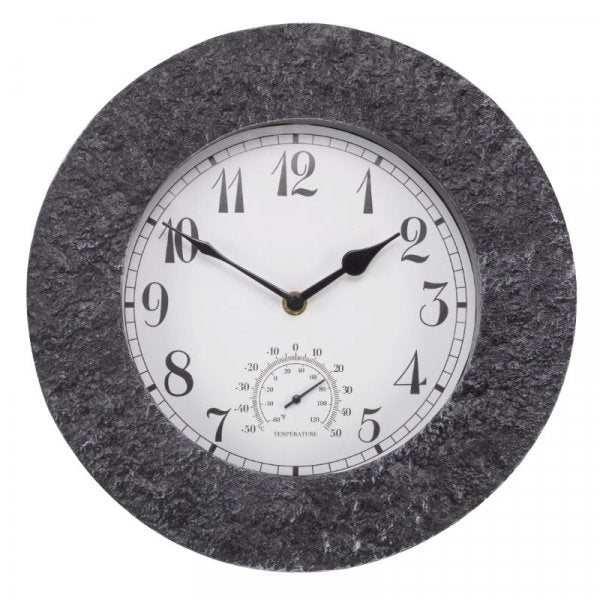Suitable for outdoor or indoor use. Granite effect surround. Quartz accuracy. Weather resistant. Requires one AA battery. 2 YEAR GUARANTEE.