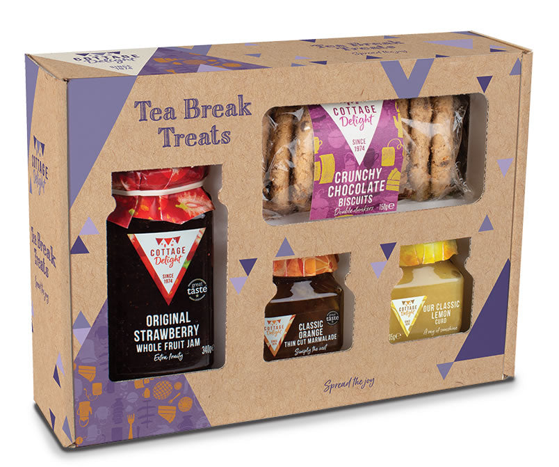 Original Strawberry Whole Fruit Jam 340g. Crunchy Chocolate Biscuits 150g. Classic Lemon Curd 105g. Classic Orange Thin Cut Marmalade 113g. Vegetarian.
