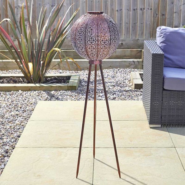 Stunning silhouette tripod casts magical silhouette patterns of light at night and is a real statement piece by day. Perfect for gardens, patios and seating areas. Long-lasting hand-painted metal construction. Size when assembled 30x100cm.