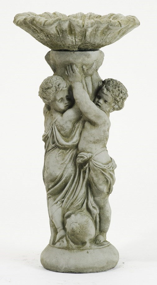 Twin Cherub Bird Bath - Stone