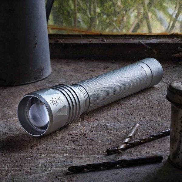 Ultra powerful torch - 1500 lumens. Adjustable from a focused beam to a wide angle beam. Rugged aluminium casing. Stylish gun metal grey. 9xAA batteries included. 23.4x5x5cm.