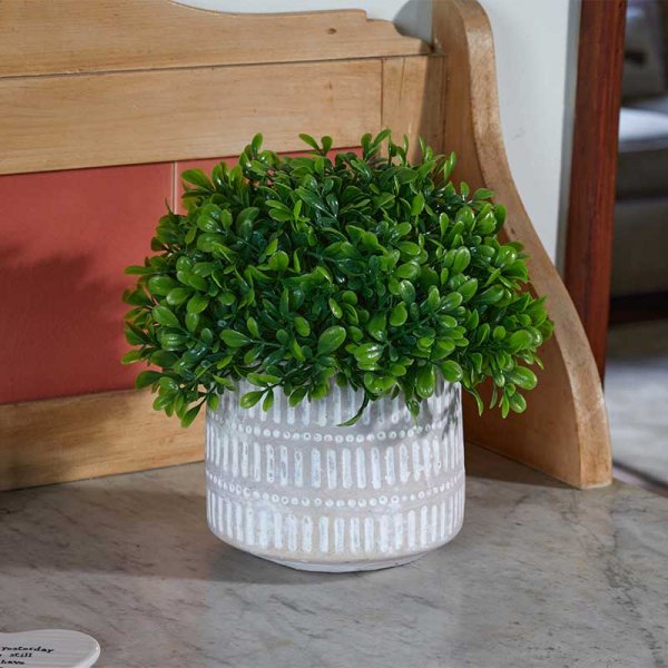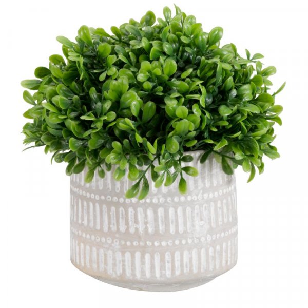 Maintenance free home décor. Realistic, no maintenance artificial pot plant arrangement. Weather and UV resistant. 22 x 21 x 21 cm.