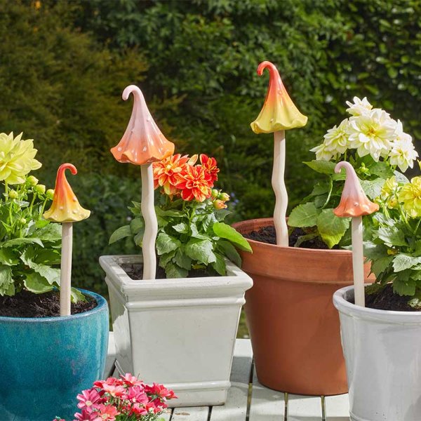 Bright and whimsical ceramic garden décor stake with wobbling toadstool top. Perfect for bringing a little bit of magic to planters, pots and flower beds. Mixed case of 2 designs. 35cm.