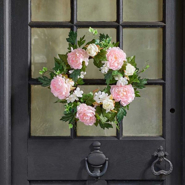 Maintenance free home décor. Brighten up doors, walls, sheds and trellises. Suitable for indoor/outdoor use. Weather and UV resistant. Hanging loop included. 40 cm dia.