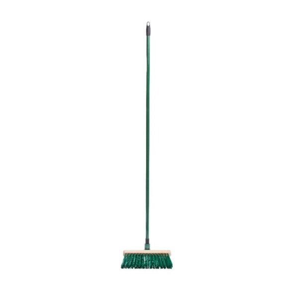 Versatile and durable outdoor broom suitable for wet and messy tasks. 30cm wide broom head with stiff waterproof bristles for quick and efficient clearing of large outdoor spaces. 140cm easy fit handle with Heavy Duty screw-in attachment.